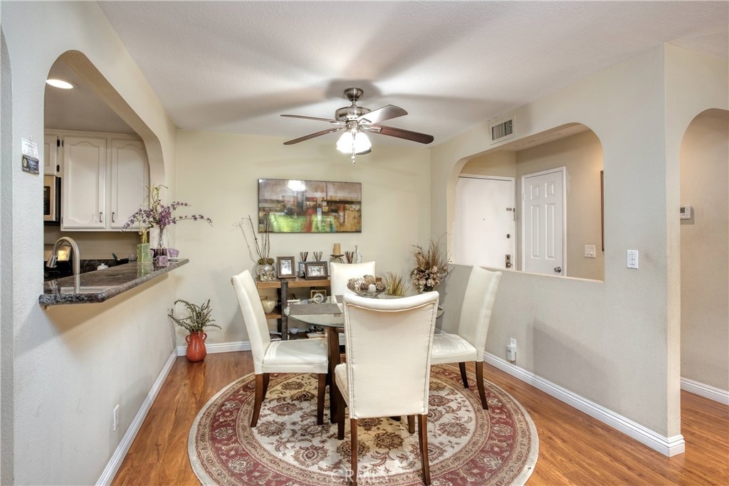 Desirable 2-bed, 2 bath, top floor single-level condo in the desirable Woodland Oaks complex. The open floorplan features a bright and airy living room with a gas fireplace, beautiful kitchen with granite counters and easily accessible appliances, a breakfast bar that opens to the dining area. The spacious primary bedroom features a vanity area with dual sinks, a private bathroom, walk-in closet as well a secondary closet. The second bedroom is on the opposite side of the living room, with an additional full bath in the hallway. Both bedrooms and the living room have access to a large balcony. A separate laundry room with a full-sized washer/dryer and ample storage is located just off the kitchen. The unit also comes with two tandem parking spots and an additional storage locker. The well-maintained complex includes private grounds with a heated pool, jacuzzi, gym, and large clubhouse. HOA includes water, trash, and EQ insurance. Great Warner Center location.