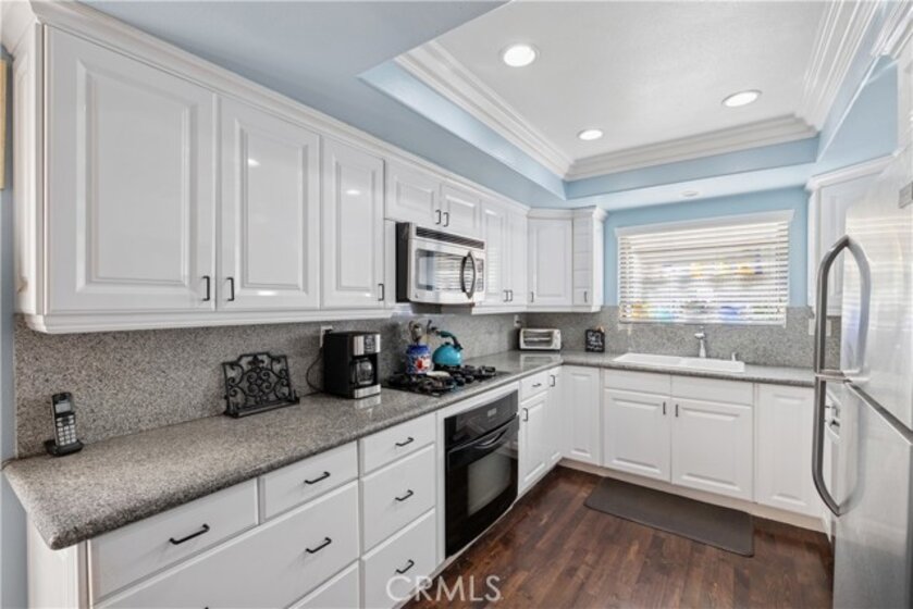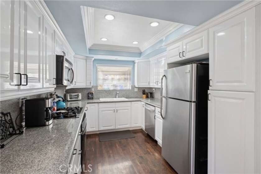 Welcome to Warner Village, where your dream tri-level townhouse awaits! This charming end unit boasts three spacious bedrooms and two and a half bathrooms, perfectly designed within an open floor plan that spans 2,022 square feet. Located in a tranquil location, you’ll enjoy picturesque views of serene streams, and refreshing pools with running water right next to the front door. Step inside to discover a bright living room featuring high ceilings and a cozy fireplace. The kitchen is a chef's delight with elegant granite counters, a delightful balcony, and a convenient eating area. Entertain guests in the formal dining room that leaves a lasting impression. The upstairs bedrooms are generously sized, with the primary bedroom offering a luxurious walk-in closet and its own private balcony. Plus, a versatile utility room provides the perfect space for an office or guest room. The HOA includes water earthquake insurance cable and the internet. The B tax rolls indicate 1,631 square feet, however the builder floor plan was measured as 2022 Sq Ft including the bonus room. Buyer to verify the square footage. One year old air conditioner. New electrical panel. Enjoy the shopping,restaurants,parks and easy access to nearby freeways and beaches.