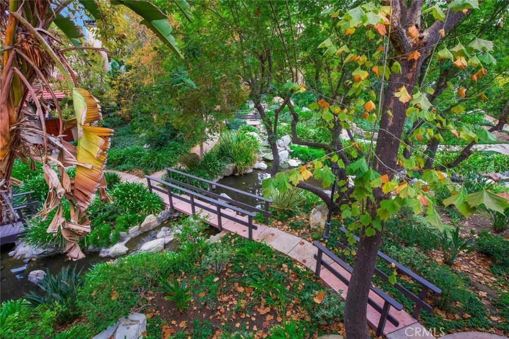Resort style living among lush landscaping, rolling streams and waterfalls, this upgraded townhome is situated in the heart of Warner Center. This highly sought after Plan E end unit in Warner Village III offers three bedrooms, 2 1/2 updated baths, formal dining room, fireside living room and attached double garage with direct access. A generous bonus room, ideal for home gym or office completes the interior, where gleaming wood floors, vaulted ceilings, recessed lighting, crown moldings and newer HVAC system welcome your most discerning client. An outdoor patio and balconies offer views of the Warner Center skyline and provide a Zen-like serenity among the scenic lush flora and babbling brooks. This unique townhome is a short distance to freeways, The Village at Westfield and Warner Center Park, home of popular summer concerts. HOA dues include earthquake insurance, basic cable/internet, pools & spas plus tennis and racquetball courts.