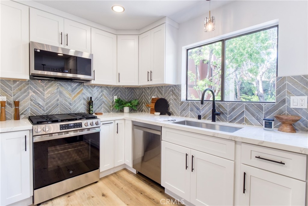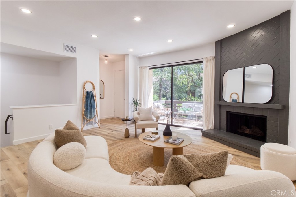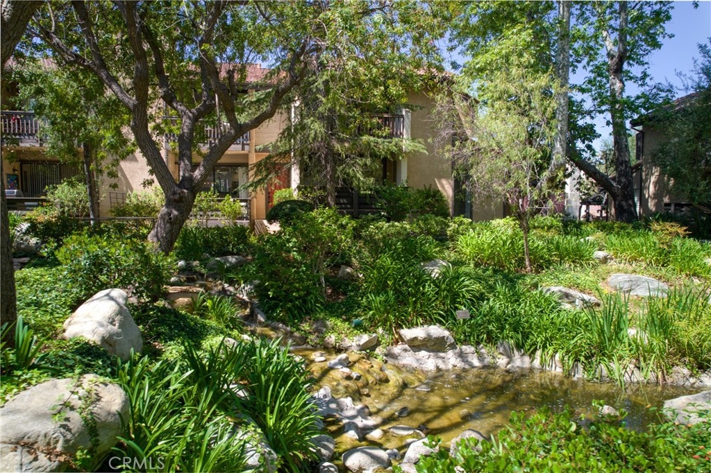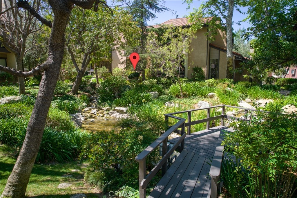 An exquisite sanctuary of tranquil water features and lush natural surroundings welcomes you to a private bridge gracefully spanning a babbling brook, creating a rare and picturesque entrance. This impeccably remodeled three-level townhome unfolds with sophisticated, high-end contemporary design and a seamless open-concept layout as it showcases a beautifully curated interior featuring new cabinetry throughout, brand-new kitchen appliances highlighted by new glass backsplash, elegant quartz countertops throughout, sleek designer tile in new shower and tub, new light fixtures and recessed lighting enhance the warmth of the flooring that creates an inviting yet refined ambiance throughout. Privacy and feel of a single-family home, complimented by the premier amenities of a meticulously maintained fully-funded homeowners association offering WiFi, water, sewer, Spectrum cable access, earthquake insurance, and pristine upkeep of the lush grounds, private balconies, 3 resort-style pools, recreation room access, tennis and racquetball courts, and pets permitted (per rules). Direct access from the attached two-car private garage leads to a versatile bonus space—ideal as a home office, guest suite, fitness studio, or playroom—complete with side-by-side laundry space. Perfectly positioned near Warner Center Park and The Village at Westfield Topanga featuring a garden-like atmosphere with diverse shops, restaurants and social spaces. This home is also poised to benefit from the highly anticipated Rams Village development, with groundbreaking expected in 2027—bringing a dynamic, multi-use destination to the area. With convenient access to beaches, transportation, and lifestyle comforts, this newly reimagined residence offers a rare blend of serenity, sophistication, and future-forward living.