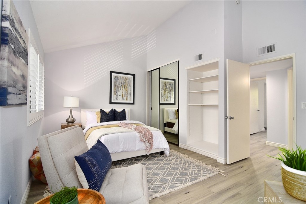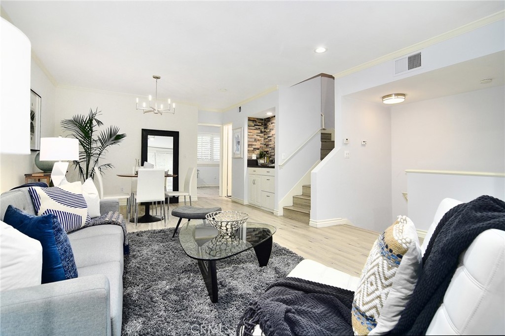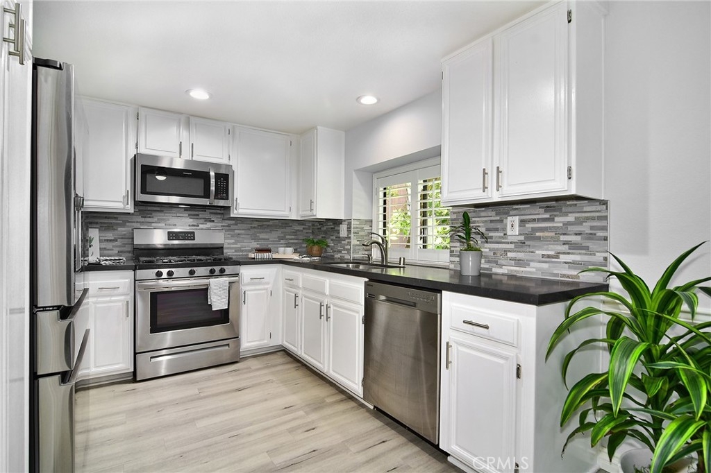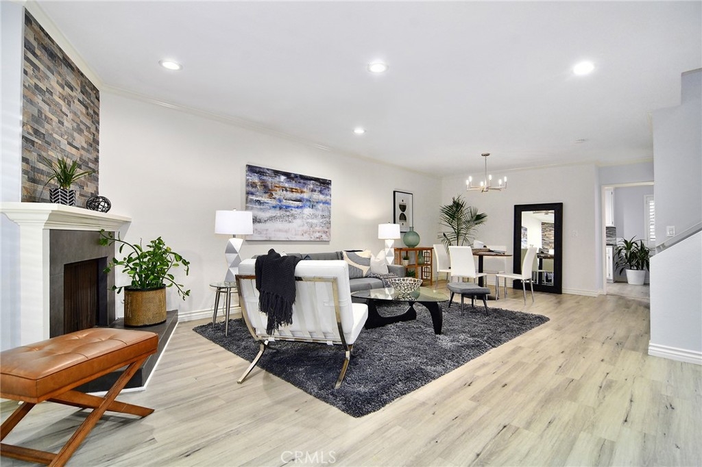 Located in the prestigious community of Warner Village III in Warner Center, this INTERIOR UNIT is light, bright and surrounded by the lush greenery this complex offers! Fully updated from top to bottom, no expense was spared in this tasteful remodel. Upon entering, the living and dining rooms are open and spacious, offering a gas fireplace and sliding doors to your private patio overlooking the sparkling pool! On the main level, you'll appreciate the open concept floor plan that showcases a large family room and dining room, half bath and kitchen. The updated kitchen features QUARTZ countertops, stainless steel appliances and convenient breakfast nook. Upstairs, the large master suite has soaring ceilings and a lovely balcony with serene views over looking the maturely landscaped green belt & pool. There are two secondary bedrooms upstairs (combined to form one large bedroom) across the hall as well as a full bath. On the lower level, there is a BONUS ROOM with laundry area that offers direct access to the private 2 car garage. This bonus room is often used as an office, guest bedroom, media room, den, gym, the possibilities are endless! Other features include NEW HEATING, AC & WATER HEATER, wood like flooring throughout, recessed lighting, fresh paint, remodeled kitchen and bar along with all 3 updated bathrooms, not to mention a superior interior location away from all major streets! Warner Village III features lush landscaping, walking paths, ponds, streams, bridges, pools, spas, tennis court, clubhouse and is pet friendly. Conveniently located near multiple guest parking spaces, not to mention walking distance to The Village, theaters, Warner Center Park with the summer concert series, restaurants, shopping and transportation. Don't miss this chance to own one of the most coveted units!