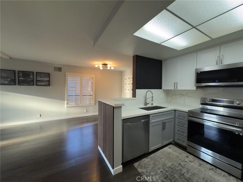 $50K reductions for a quick sale! Absolutely amazing dream condo in the Desirable “Warner West” Community! This exceptional condo, located in the heart of the highly sought-after Warner West community, offers a rare and desirable floor plan. With contemporary design elements throughout, this home shows like a model! Tastefully upgraded, it features a beautifully designed kitchen with sleek quartz countertops, newer modern stainless steel appliances that are both Wi-Fi and voice-enabled, an extra-large barn sink, custom soft-close cabinet doors and drawers. The luxury laminate flooring throughout adds a touch of elegance, while energy-efficient LED lights illuminate the space. Smart switches are installed in the living room, kitchen, hallway, and bathroom for added convenience. The Nest-controlled central heating and air system ensures year-round comfort, while brand-new electrical outlets and light fixtures have been installed. Freshly painted walls, bath, doors, and balcony enhance the overall appeal. Step outside to enjoy the spacious L-shaped balcony with a tranquil pool view—perfect for relaxation. The property includes two dedicated parking spaces.Community Amenities include a Fitness center, Spa, Pool, Basketball court, Recreation room for gathering, ample guest parking. The HOA covers water, sewer, trash, earthquake insurance, and more. Ideally located near Topanga Village, Warner Center Park, Trader Joe’s, Whole Foods, Amazon Fresh, Costco, and fine dining. Public transportation and easy access to the 101 Freeway make commuting a breeze.