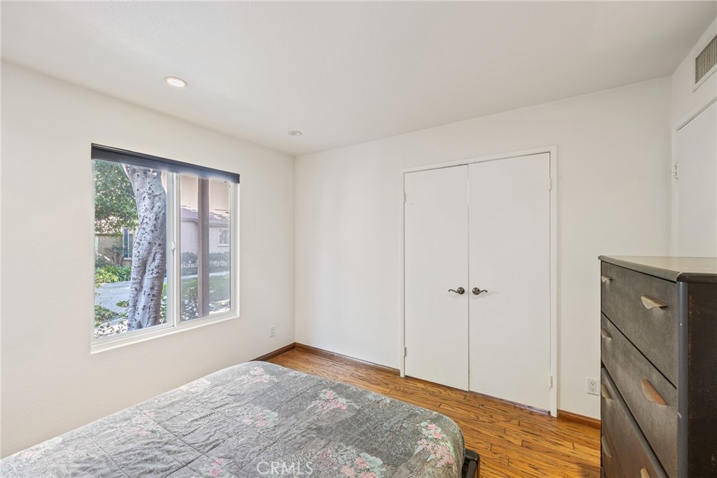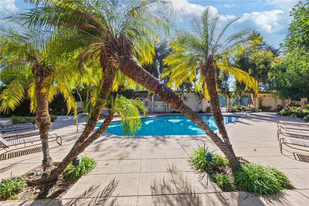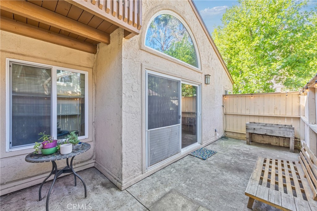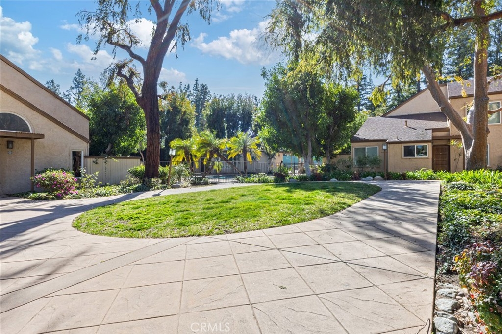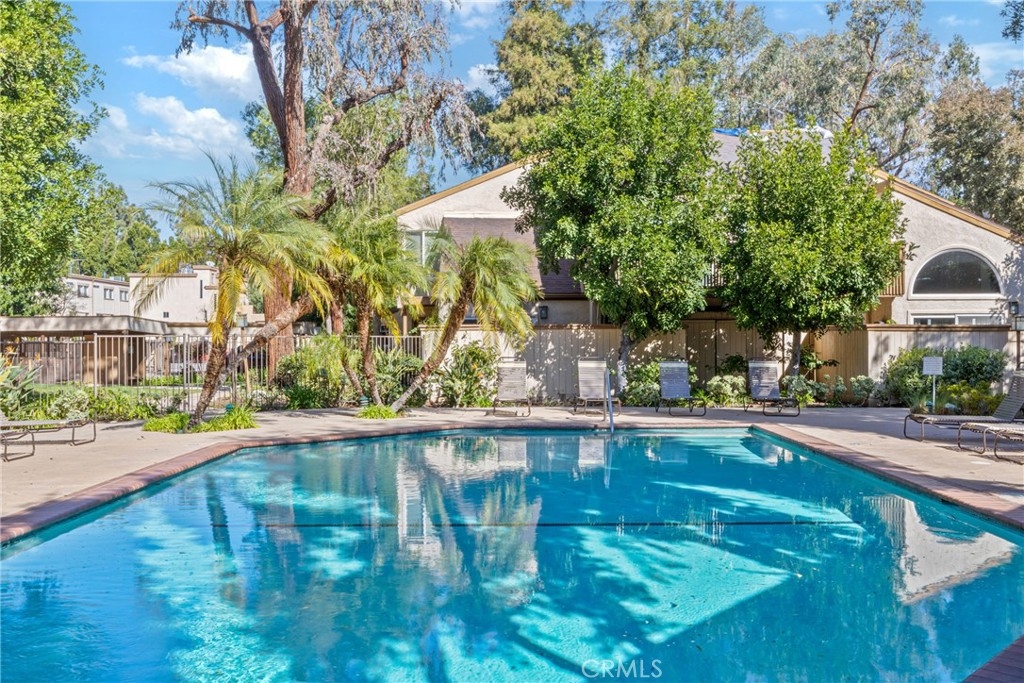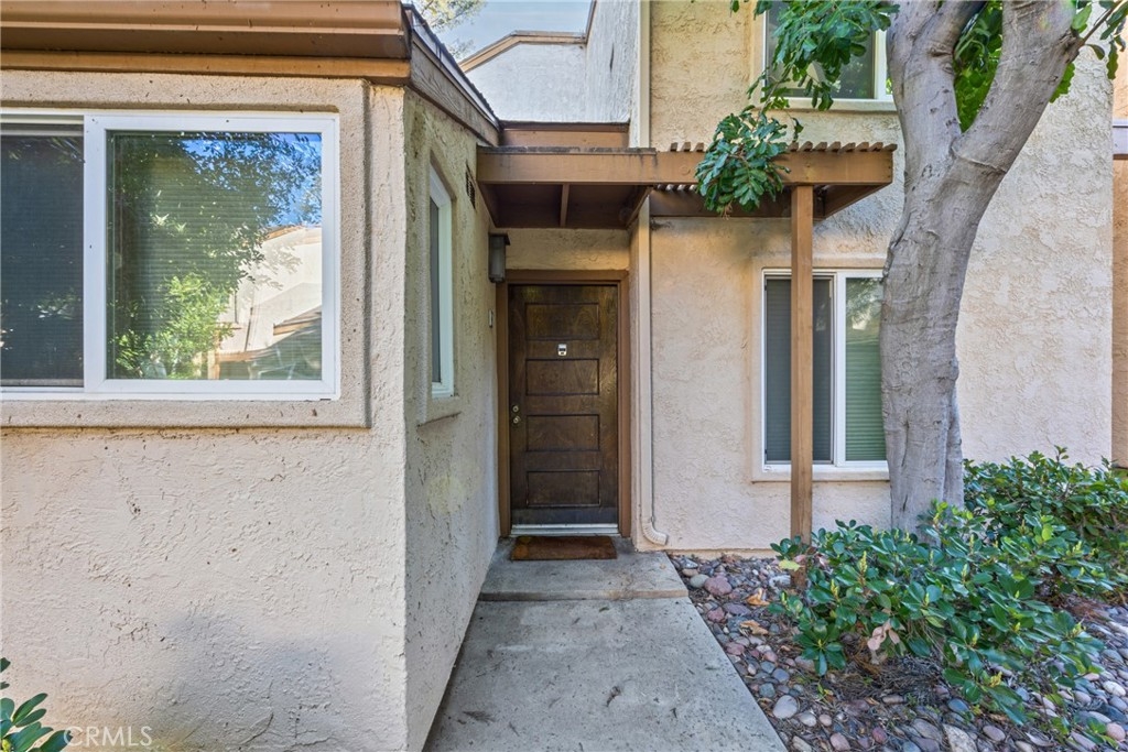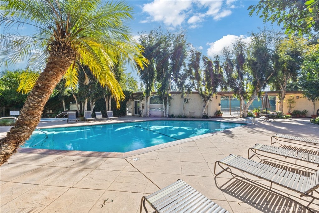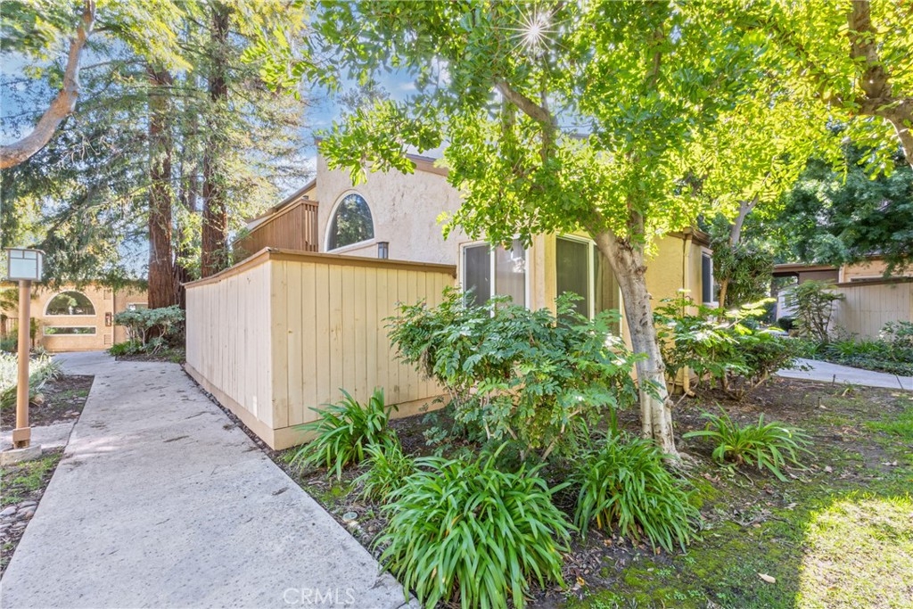 Tucked away in the heart of Sequoia Village, this beautifully updated lower-level two-bedroom condo offers a peaceful, park-like atmosphere. Inside you'll find a spacious living room with soaring vaulted ceilings. The remodeled kitchen features plenty of cabinet space, sleek countertops, a dishwasher, refrigerator, range with a microwave hood, recessed low-voltage lighting, and a convenient lazy Susan corner cabinet. The secondary bathroom is comfortably designed featuring travertine and stone tile flooring, a stylish stall shower with a frameless glass enclosure. High-end chrome bath fixtures, including a hand-held shower spray, add to the modern feel with hardwood floors throughout. The spacious primary bedroom includes two mirrored, lighted wardrobe closets, while the second bedroom, with its double-door entry, is versatile enough to be used as a home office or a den that opens to the main living area. Also included is a full-size washer and dryer, an upgraded electrical panel, newer heating and air conditioning, shaded private patio-perfect for relaxing. The unit also comes with two side-by-side covered parking spaces in a gated carport. Sequoia Village is a well-maintained community offering resort-style amenities, including a pool, gated security. The location is unbeatable—just a short walk to Topanga Plaza, The Village, and the brand-new Rams Training Camp. With easy access to the 101 Freeway and some of the best schools in the Valley, this is an opportunity you don’t want to miss!