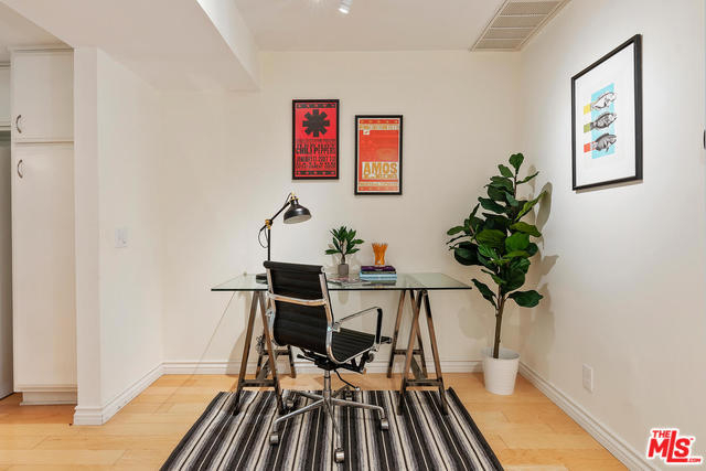 Sensational sophisticated townhome located well south of Ventura Blvd. in highly desirable and rarely offered nine unit complex. Gated secure courtyard entry opens to well maintained common area(s) to centrally located unit. Downstairs: Light / bright open living room w / recessed lighting and fireplace opens to fantastic kitchen w / newer sink, fixtures, cabinet faces / hardware, lighting, granite counters and large adjacent dining area both with eastern green space views. Wonderful powder room off living area. Gorgeous wood floors in all public area and stairs. Upstairs: Ample secondary bedroom w / updated bath. Incredible master suite w / newer lights, fixtures, marble floor and accents, jacuzzi style tub and shower. Gated subterranean parking with two (2) huge side by side parking spaces. Peaceful yet close-in location with moment's notice accessibility to all Woodland Hills (New Mall developments, Warner Center, Restaurants, shopping etc..) has to offer. Not to be missed, A 10+!
