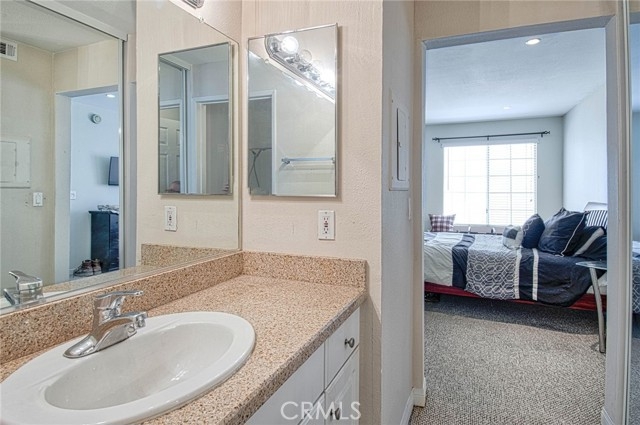 BRAND NEW FLOORING AND PAINT. Turn-key ready to go. Beautiful single level condo available in the highly desirable area of the Met in Warner Center. Upgrades include granite counter tops in kitchen/bathroom, wood laminate floors in kitchen, new carpet in bedroom, living room, recessed lighting and new paint throughout. Home comes with 2 parking spaces very close to unit. Enjoy the resort style association amenities including multiple pools, full gym, indoor basketball/racquet ball courts, tennis courts, spa, sauna, children's play area and 24-hour security. The Met is a guard gated community close to restaurants, shopping, freeway access. VA and FHA approved complex.