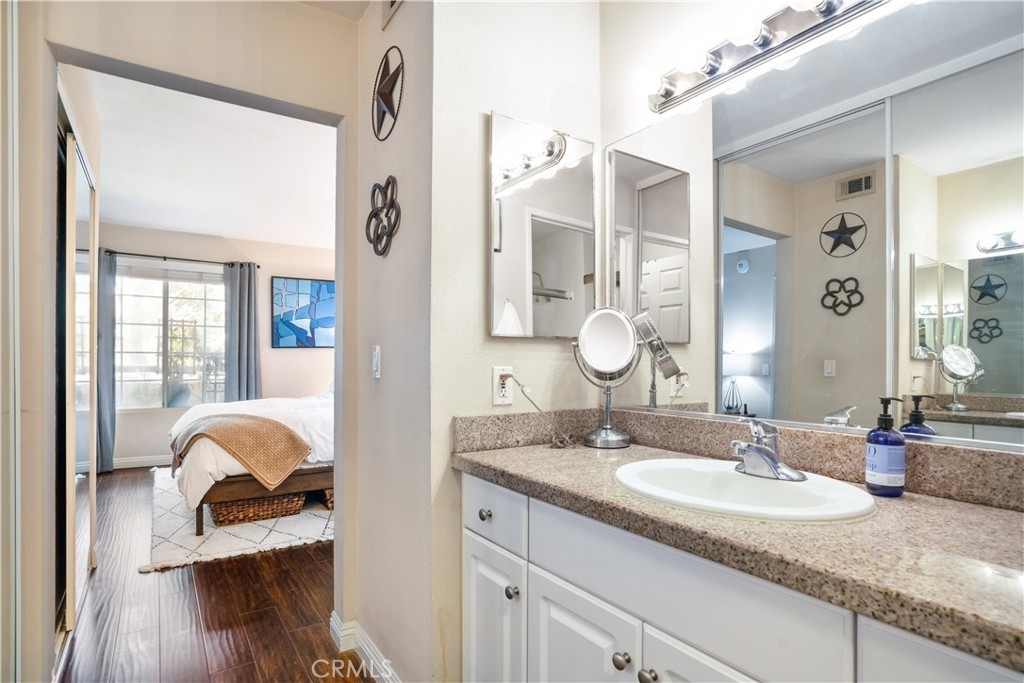 Beautiful 1 bed + 1 bath condo in building #1 with 2 SIDE-BY-SIDE parking spaces at the Met! Prime location! Along with beautiful city and street views, this condo is in a prime location in the building and the complex that has unique immediate access to Canoga Ave that allows you to easily and quickly access the markets, restaurants, shops, and the Village of Warner Center. This unit features granite countertops, stainless-steel appliances, a fireplace a spacious balcony, recessed lighting, and extra wardrobe space compared with other units. Highly coveted wood laminate flooring throughout! The Met is protected by 24-hour security and has resort-style amenities: 6 lighted tennis courts, 4 pools, dry saunas, jacuzzis, indoor basketball, and racquetball courts, a fitness center, a clubhouse, and children's play structures.