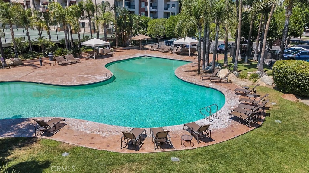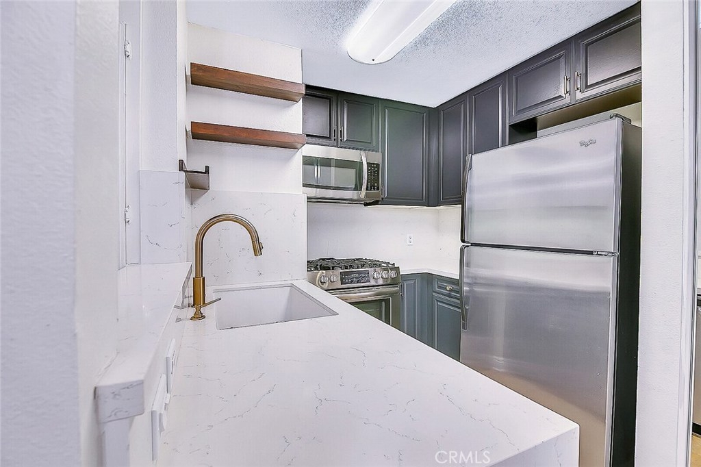 Welcome to a completely updated second floor, 1 bedroom, 1 bath condo. Close to shopping, dining and down the street from the Woodland Hills Village. This guard-gated, resort-style community offers 24-hour security, 2 tandem parking spaces, a fitness center, beautifully landscaped grounds with amenities including swimming pools, tennis, basketball, and racquetball courts. This home provides an open living room with a corner wall fireplace, dining area and a contemporary kitchen. The unit is conveniently located next to the main pool and gym. The kitchen is equipped with new quarts countertops, champagne bronze delta faucet, and a suite of new fully integrated stainless steel appliances. This home has luxurious flooring, fresh paint, central heating and cooling, Nest thermostat controls, and a private balcony. Just off of the living area is a spacious master bedroom with an en-suite bath with quartz countertops which features dual mirrored wall closets and champagne bronze delta fixtures. HOA dues include water, trash, earthquake insurance. FHA/VA approved.