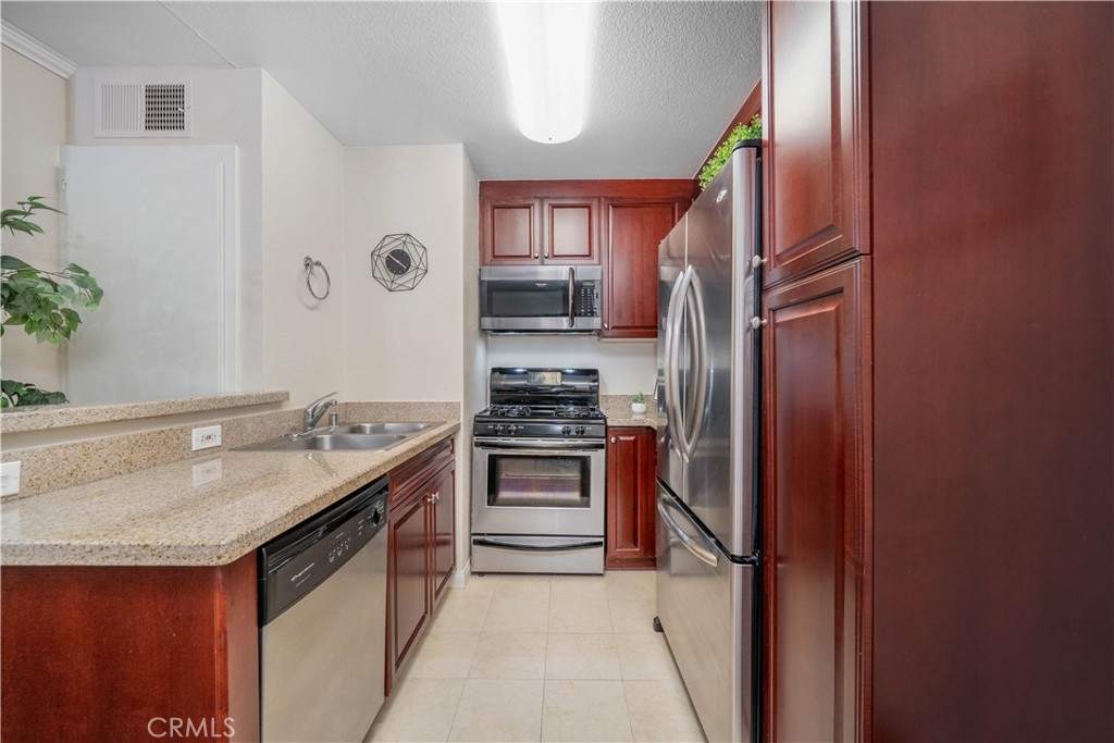 “Price Improvement Unveils a Rare Opportunity: Don’t Miss Your Chance!” Resort style living in a highly revered, 24 hour guarded, private Gated Community of Warner Center, Woodland Hills. One of the most well positioned units within the complex - close to all exclusive amenities such as Lagoon style pool and spa with several decking and patios for dining Al Fresco or just enjoying an afternoon social with friends and family. Clubhouse, Large Gym, Racquetball court, 6 Tennis courts, 4 Pools and Spas, 2 saunas, playground area with slides, event deck, beautifully maintained lush grounds with greenbelt and one of my many favorite perks is the Side-by-Side parking for 2 cars located very close to the unit. Beautifully maintained and updated unit with vinyl floors, features a nice open floor plan with a lovely balcony off the living room to enjoy the sound of nature from the nearby greenbelt. Perfect kitchen for a chef who likes company while preparing sumptuous dinners. It boasts granite counters; stainless steel appliances and is open to the dining and living areas. After dinner, relax by the romantic fireplace or watch your favorite show and enjoy the evening before retiring in the lovely spacious bedroom with 2 closets and ceiling fan. Updated bathroom with granite counters and separate private shower and tub complete this wonderful home. Attention First Time Buyers, downsizers, second home Buyers, now birds, seniors, investors, veterans and everyone who is looking for a luxurious lifestyle on a smaller budget. This may just be the place you are looking for. Community is located in one of the fastest growing communities of Los Angeles, The Village at Warner Center, the new LA Rams headquarters and proposed entertainment and sports center, bike paths, and some of the best shopping, dining and entertainment. Close to sunny California Beaches, biking and hiking trails, concerts in the parks during summer months. This is not just home but a lifestyle. Some additional features are: privacy window film on sliding doors and bedroom window, level door lock to operate remotely, NEST thermostat, NEST carbon monoxide, smoke and motion sensor lights, bedroom and living room ceiling fans with lights, dimmable lights switches, dual pane windows and slider, gas fireplace with electric starter and gas logs, mirrored closet doors, updated Oxygenic shower head, smooth ceilings and more.