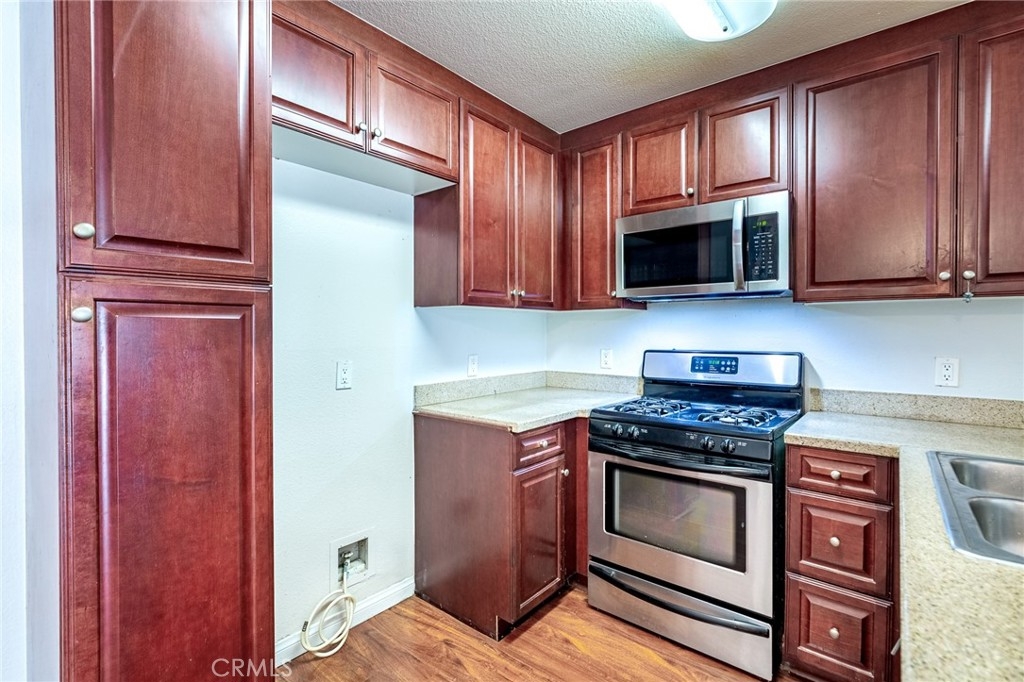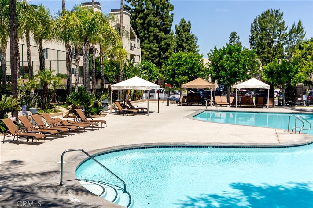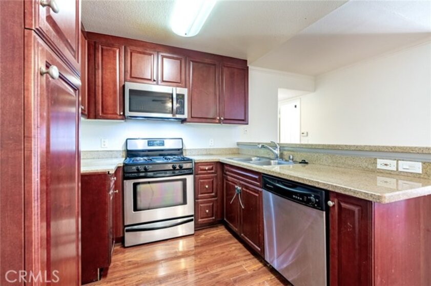 Welcome to this beautifully updated condo in the highly sought-after The Met at Warner Center, offering a rare 3-bedroom, 2-bathroom layout. This light-filled residence features abundant windows and an open-concept design anchored by a cozy fireplace. The living area flows seamlessly onto an exceptionally large private balcony, creating a serene retreat ideal for relaxing or entertaining. The updated kitchen is appointed with granite countertops, stainless steel appliances, and ample cabinetry. Hardwood flooring throughout enhance the home’s modern appeal. The spacious primary suite includes its own full bathroom, while the generously sized second and third bedrooms provide comfort and flexibility. Two bathrooms were recently updated. An in-unit stackable washer and dryer add everyday convenience. Residents enjoy resort-style amenities including 4 multiple pools, 6 tennis courts, a fitness center, basketball and racquetball courts, spa areas, and 24-hour guard-gated security with patrol. Ideally located near premier destinations such as The Village at Westfield Topanga and redeveloping Ram’s Village, this home offers easy access to top-tier shopping, dining, and entertainment. A true Woodland Hills gem—this is a must-see opportunity you don’t want to miss.
