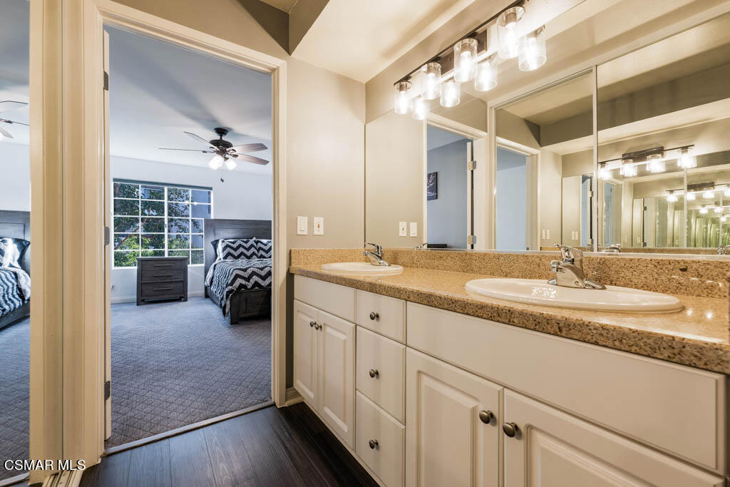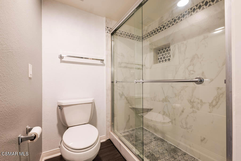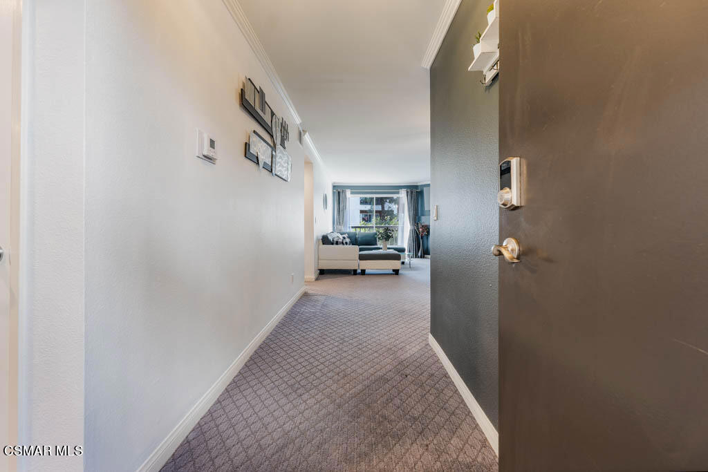 Welcome home to this gorgeous 2 bed + 2 bath updated and meticulously cared for condo. Centrally located in one of the most coveted buildings in the Met, this serene oasis boasts resort style amenities, and a prestigious 24-hr guard gated community located in the heart of Woodland Hills at Warner Center. This open floorpan features a modern kitchen overlooking the dining room with a new heat and scratch resistant granite double sink to compliment the granite countertops and newer stainless steel appliances. Newer carpet and flooring throughout. Enjoy sipping your morning coffee or tea with views of the city off this charming private balcony with plenty of sunlight. The grand primary suite offers a large window with treetop view and lets in relaxing natural sunlight. The primary bathroom includes a double sink with gorgeous remodeled shower and a mirrored walk in closet-lined hallway. Secondary bedroom suite has double mirrored wall closets and is adjacent to secondary bathroom. Newer stackable washer/dryer area is conveniently located between the 2 bedroom suites. Recently replaced and updated are the water heater, AC, garbage disposal, master toilet, bedroom fans, lighting fixtures and paint.Parking is conveniently located directly below in gated garage. Resort-like amenities Include 24 Hour Security With A Guarded Gate, Well-Manicured Gardens & Green Belts, 4 Large Sparkling Pool With Cabanas & Wi-Fi, 3 Other Charming Small Pools, Inviting Spas, 6 Lighted Tennis Courts, State Of The Art Fitness Center, Racquetball Court, Basketball Court, Sauna and Clubhouse. Incredible Location close to the central pool and tennis courts, walking distance to amazing playground, grassy area and moments from Westfield Topanga, The Village, Costco, Whole Foods, Trader Joe's, Excellent Restaurants and Ventura Blvd.