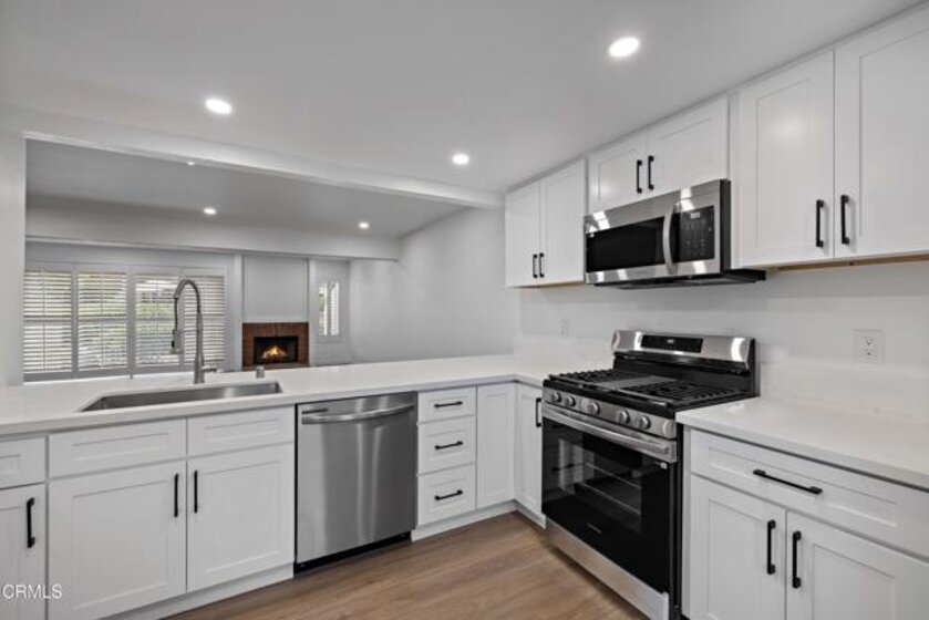 Welcome to this fully renovated 2-bedroom, 3-bathroom condo in the heart of Woodland Hills, offering modern design, quality craftsmanship, and an unbeatable location close to everything.No detail was overlooked in this top-to-bottom transformation. The brand-new kitchen features solid wood cabinetry, quartz countertops, a stainless steel undermount sink, chef-style faucet, and a full suite of stainless steel appliances--perfect for everyday living and entertaining alike. Recessed lighting replaces outdated fixtures, creating a bright and contemporary feel throughout.The home boasts new waterproof LVP flooring with wide 48' x 7' planks, fresh white paint, all-new interior doors, trim, hardware, outlets, and thoughtfully added recessed lighting across both levels. Large new windows and exterior doors enhance natural light and energy efficiency.Upstairs, both bathrooms have been completely rebuilt with spa-inspired finishes, including solid slab stone shower walls for a seamless, high-end look. The primary suite offers a custom, wall-to-wall closet system, a new double vanity with quartz counters, a walk-in shower, and a newly framed entry with added privacy. A convenient downstairs half bath and an upgraded upstairs laundry area add everyday functionality.Ideally located near shopping, dining, entertainment, and major commuter routes, this move-in-ready condo delivers modern comfort, style, and convenience in one of the Valley's most desirable neighborhoods.A rare turnkey opportunity--don't miss it.