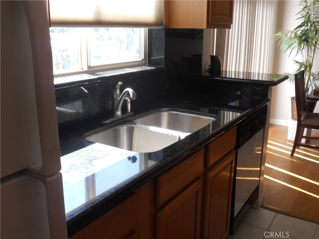 Top of the world! Great location in the Fountain Park Complex. 2 bedrooms, 1 full bath with Balcony facing Warner Center. Unit has been upgraded with granite counters in kitchen, newer appliances, lots of cupboards. Laminate flooring in all living areas. Upgraded bath. Huge closet in master bedroom. Property is on 8.5 acres of lush parklike grounds, walkways, flowering shrubbery, two swimming Pools, kiddie pool, play area, sports court, BBQ's, recreation room with full kitchen. Monthly association fee includes, Property Taxes, fire and earthquake insurances, water, sewer, trash, all exterior maintenance and some within the unit (ask agents). Complex is gated. One covered parking space per unit with storage lockers above space. Full time manager, maintenance and gardeners on premises. Owners only. Units can not be rented. One lender, 10% down. Call listing agents for details. Ideal place to be in "The Happening Location" of Woodland Hills/Warner Center. Supra now on, call agents first.................