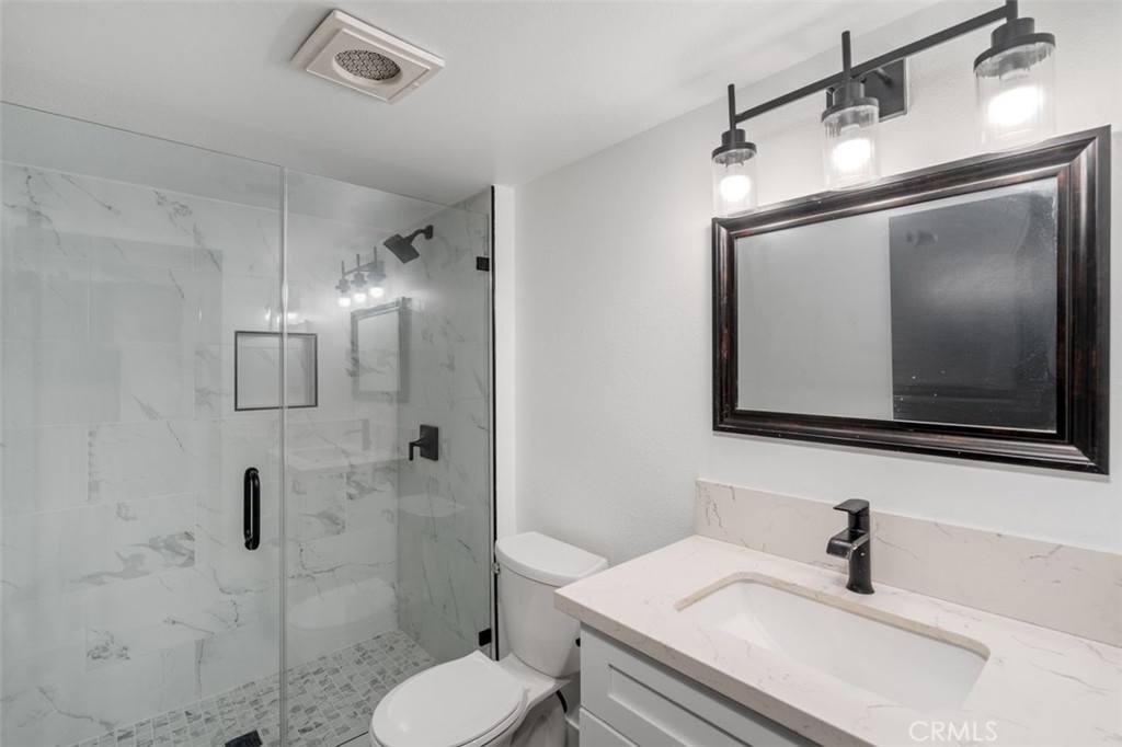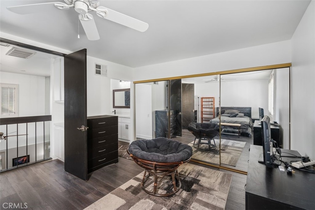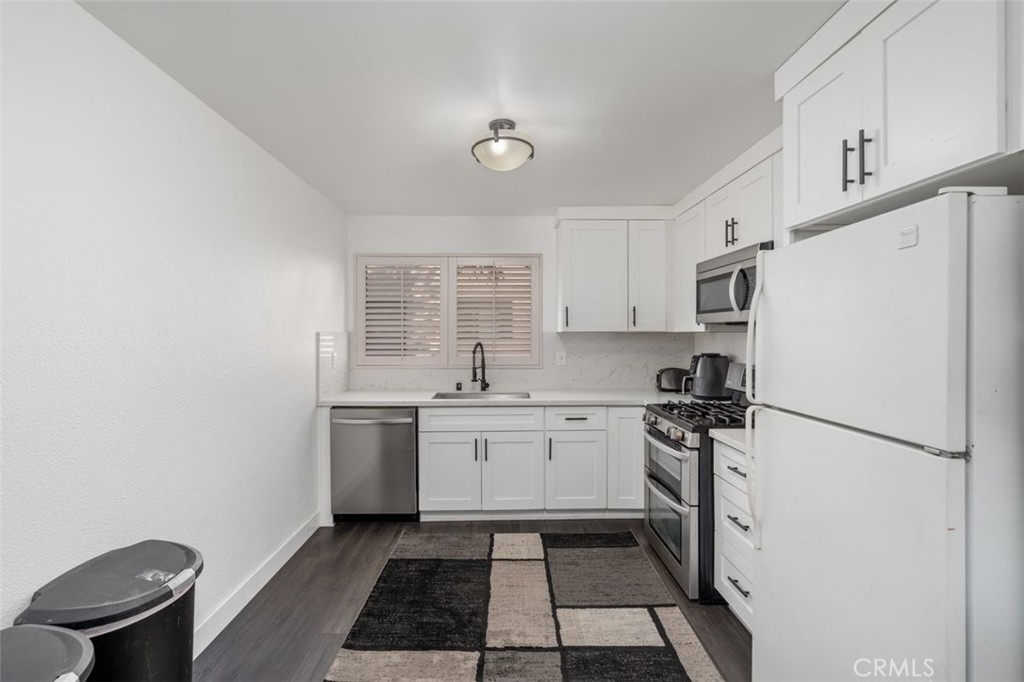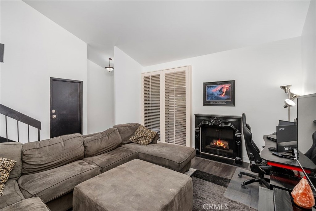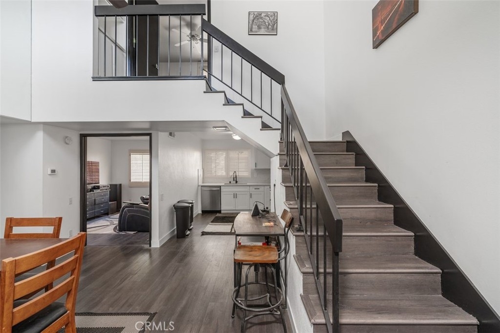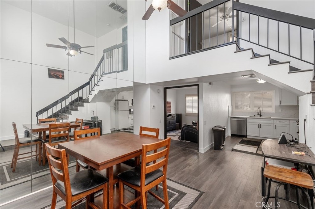 What an incredible property!. This inside end unit has a prime location with enhanced privacy featuring approximately 1,243 sq. ft. with a thoughtful multi-level layout. You enter through the very private brick patio with a water fountain and surrounded by lush landscaping and fruit trees. The first floor consists of a living room with a fireplace and cathedral ceiling. On the second floor is the second bedroom, full bathroom with a new shower stall and custom shower doors, kitchen with quartz counter tops, and the dining area. The large master suite is on the upper level with a sitting area, ample closet space with full wall mirrored closet doors, master bath with new custom shower stall, and double sinks. Features include plantation shutters, new wood laminate flooring throughout, freshly painted, and new electric service. There is also an attached garage with the laundry area and additional storage area. This townhome is not only move-in ready but also perfect for anyone seeking comfort, style and a great location. The Dove Creek Condominium Complex offers an ideal blend of amenities, convenience, and privacy. The amenities include two tennis courts, a heated pool and spa, earthquake insurance and well maintained grounds. This is an ideal place to call home!