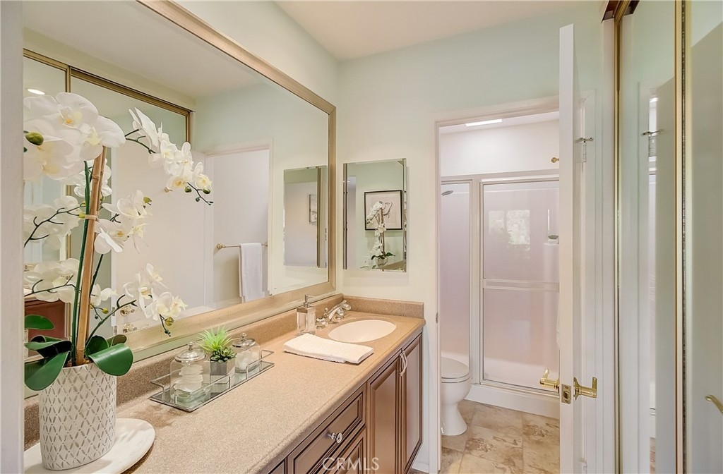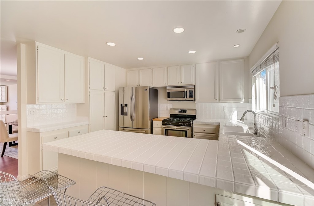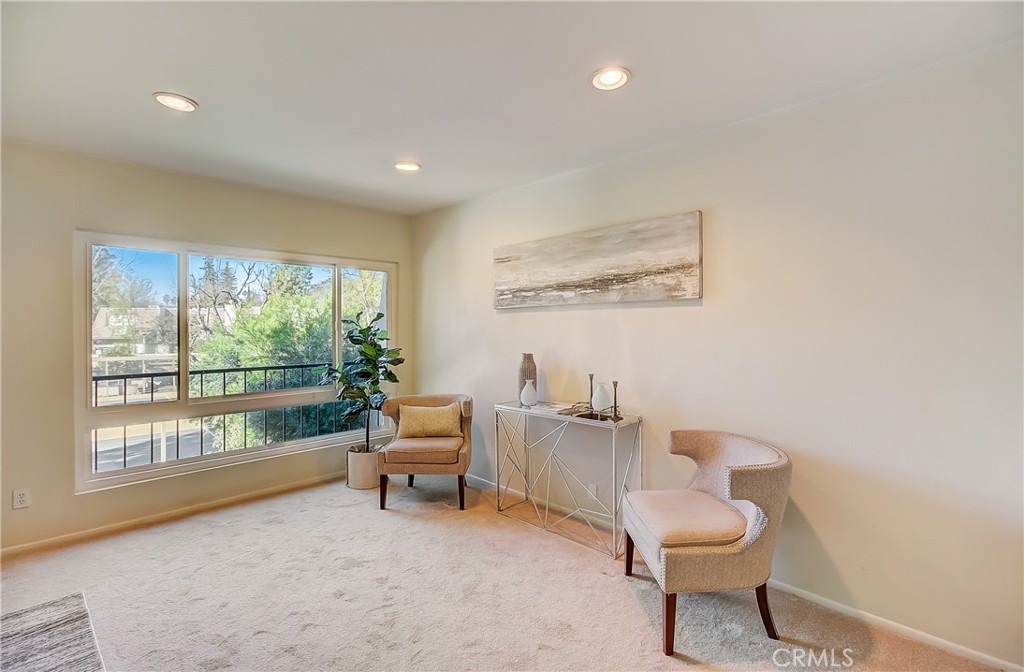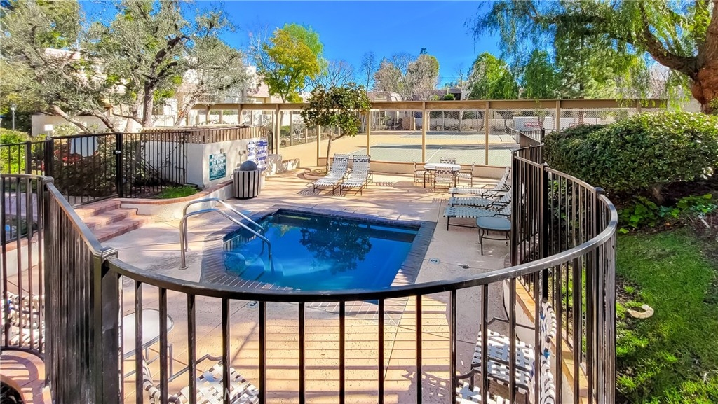 Welcome to this large and bright 3 Bedroom 2.5 Bath Townhome that feels like a house. This home has the best location in the complex with no neighbors in front of you. You will have tranquil views of trees and open air, you'll never want to leave your home! The living room has a fireplace, shutters, high vaulted ceilings and has a great open feel to the dining room which is great for entertaining. Very large kitchen with stainless steel appliances, large eat-in area with a wet-bar and tons of storage! The bedrooms are all spacious, especially the primary bedroom with double closets. Both other bedrooms have shutters. 3rd bedroom is currently used as a loft office/guest room. Recent upgrades include a newer A/C Unit, 2yr old washer dryer and refrigerator. All dual pane windows. The home offers direct access to the attached garage and laundry area. The home is located in the prime area of Woodland Hills and is a stone's throw to the Village, Topanga Westfield Mall and Warner Center. With tennis courts and a pool, what more could we ask for!