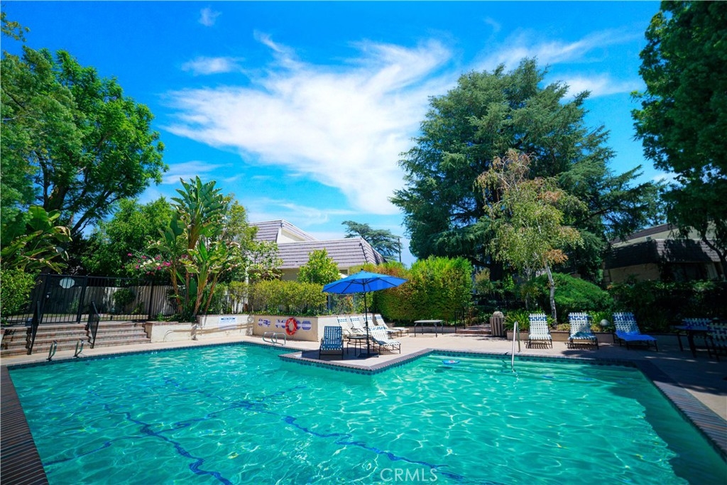 Welcome to this light-filled, two bedroom, two and-a-half bath, end unit townhome within the much sought after and lushly landscaped Dove Creek Townhomes! This desirable community features two spas, a year-round heated pool, and two beautiful tennis courts. Proximity to Warner Center, Woodland Hills Recreation Center, Warner Center Park, The Village, and a multitude of other shopping, dining, and entertainment options are all nearby. The townhome is a well-designed corner patio home with an open floor plan and generous proportions. Enjoy your landscaped and gated private patio area to relax, barbeque, or perhaps enjoy an al fresco meal. The patio is in view from the comfortable living room with its cathedral ceiling and cozy gas fireplace. The fireplace turns on with the flick of a switch, setting the perfect ambiance for relaxation. Overlooking the lovely living room is the spacious dining room that also enjoys views of the patio. A bright kitchen features a new dishwasher and large pantry ready to prepare any meal. An adjacent family room offers even more space to stretch out or entertain. Lovely wood flooring runs throughout the home. The spacious master suite includes ample closet space with an updated bath. The gracious secondary bedroom also features an en suite bath. Direct interior access to your private 2-car garage with laundry area rounds out the full package for this inviting home!