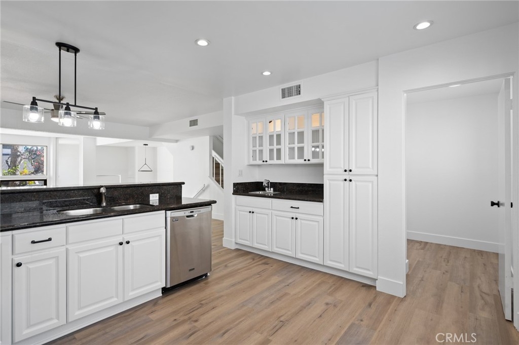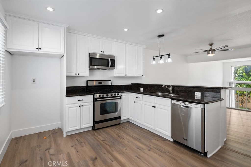 Come experience the best of Woodland Hills at 6225 Randi Ave. This freshly updated 3-bedroom, 2.5-bathroom townhome is nestled on a quiet corner of the gated Villa Madrid community. The desirable split-level floorplan maximizes the 1,575 square feet and creates open, inviting spaces. The private patio leads into the living area with vaulted ceilings, high windows, and large fireplace. Next up are the dining area, open kitchen, laundry/pantry space, and powder room. On the top level are three spacious bedrooms and two bathrooms, including the master suite with vaulted ceilings. Downstairs is a private two-car garage and plenty of storage. The home has been tastefully updated, with luxury vinyl plank flooring, new baseboards, and fresh paint throughout, and modern hardware and lighting touches. Located in the heart of the Warner Center area, just steps from top dining, shopping, and entertainment options. Enjoy Westfield Topanga, The Village, Topanga Social, the new LA Rams training complex, and more. Don’t miss out on this wonderful home!