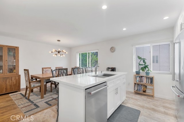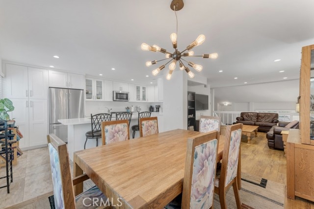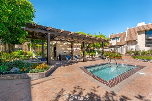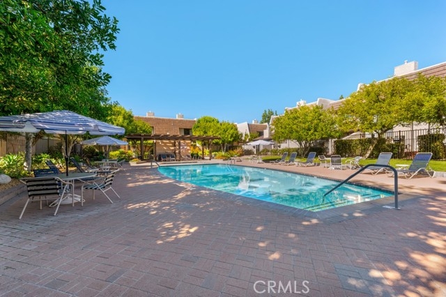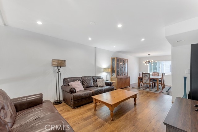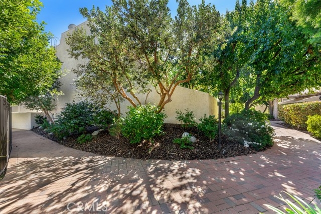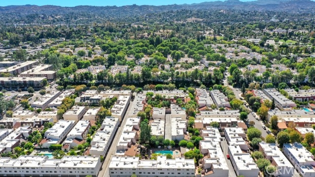Nestled within the sought-after Villa Valencia community of Woodland Hills, this end-unit townhome offers the perfect blend of privacy, comfort, and style. A gated front courtyard welcomes you into a light-filled interior with an open floorplan, engineered hardwood flooring, and recessed lighting throughout the main level. The spacious living room features a cozy fireplace and sliding glass door that opens directly to the private courtyard, creating a seamless flow between indoor and outdoor living. A few steps up, the open-concept mid-level unfolds with two expansive living and dining areas that flow seamlessly together, offering flexible use of space and a wonderful sense of volume overlooking the main living room below. The kitchen opens to this versatile area and is thoughtfully designed with a center island with seating, quartz countertops, white shaker-style cabinetry, stainless-steel appliances, stone tile flooring, and a classic subway tile backsplash. A convenient powder bath completes this level. Upstairs, both bedrooms feature en-suite bathrooms, including a spacious primary suite with double-door entry, walk-in closet, and an elegant three-quarter bath showcasing an oversized shower with skylight and separate vanity area. The secondary bedroom includes a full en-suite bath with shower/tub combo. Additional highlights include a two-car attached garage with direct access, dedicated laundry space, and extra storage. As an end unit, the home shares only one wall and enjoys abundant natural light throughout. Residents of Villa Valencia enjoy a resort-like setting with lushly landscaped grounds, a sparkling pool, relaxing spa, and peaceful greenbelts. Ideally located in the heart of Woodland Hills, this home is minutes from premier shopping and dining at The Village and Westfield Topanga, as well as neighborhood favorites along Ventura Boulevard. Outdoor enthusiasts will appreciate nearby hiking trails and parks, while convenient access to Topanga Canyon Boulevard, Mulholland Drive, and the 101 Freeway ensures an easy commute. Thoughtfully appointed and ideally situated, this townhome presents an exceptional opportunity in a highly coveted Woodland Hills community.