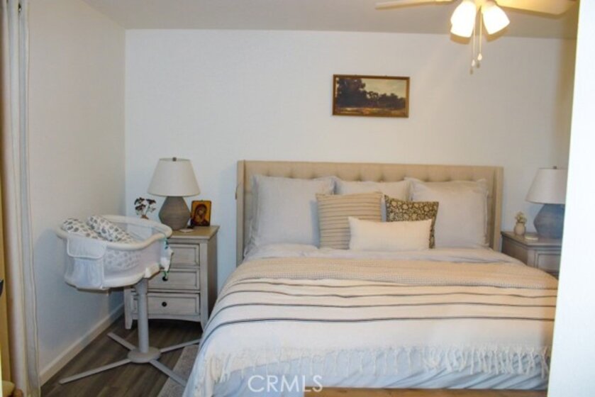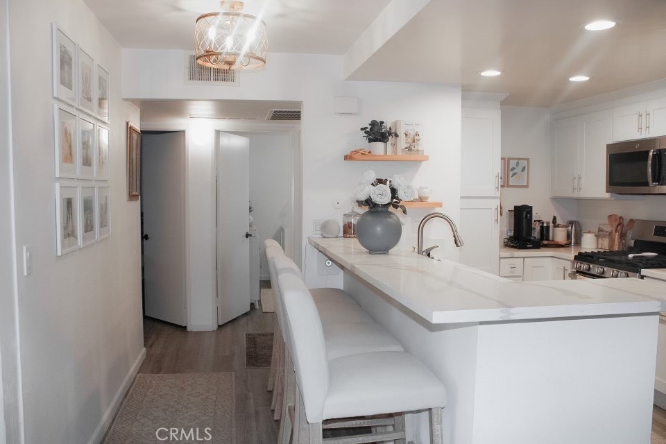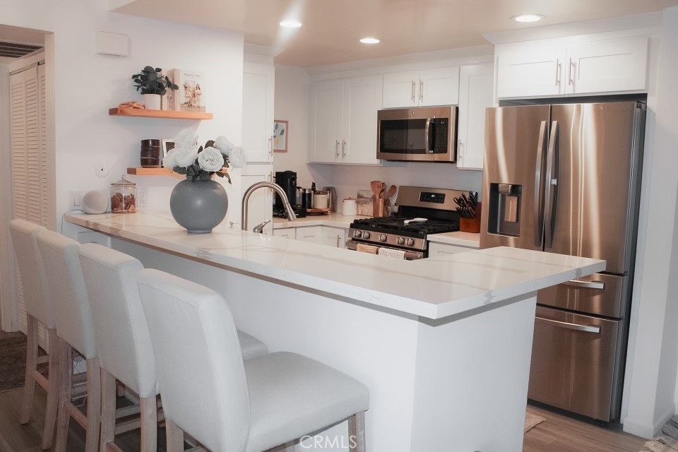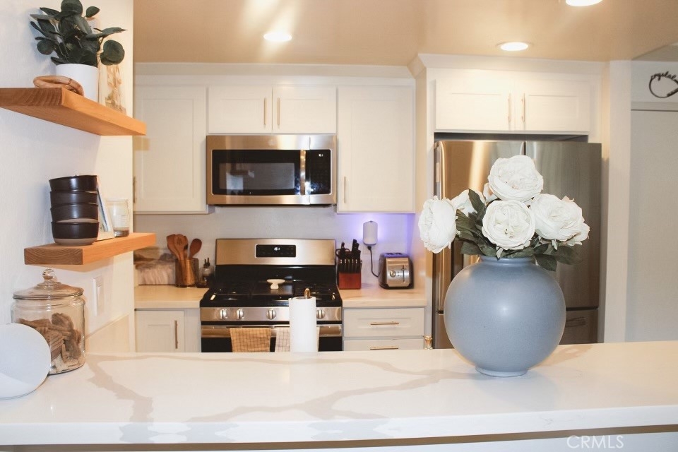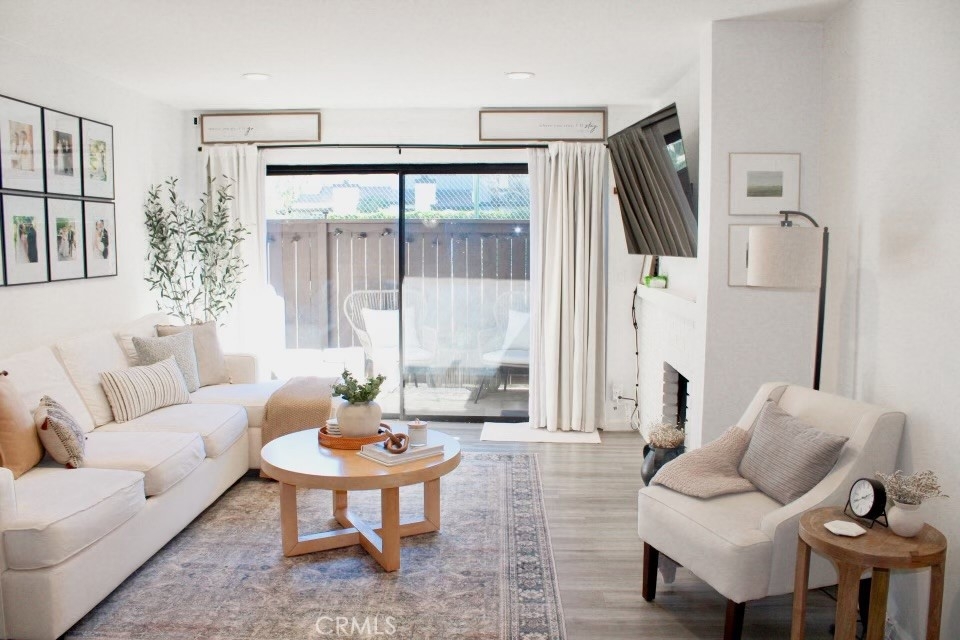 Elegantly & Stylish bright Newly updated unit, located in the security-gated Woodlands complex in desirable community. Includes 2 bedrooms/ 2 baths spacious living room approximately 1001 sq ft perfect for entertaining. Very spacious with lots of light shining through the newer laminate flooring just installed and the stylish Calacatta Quartz countertops, newly painted walls that give it the bright heavenly feeling of home. Features fireplace in living room, recessed lighting with private outdoor balcony/patio. Private 2 car garage with great storage. Resort-style Community grounds offers many great amenities, including pool, spa, tennis courts and clubhouse with greenery views. Walking distance to the village, topanga mall, and fine dining. Also around the corner from the potential home of the LA Rams new practice facility.