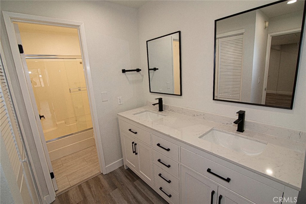Open and bright single-level condo located in the highly desirable, guard-gated Warner Woodlands community in the heart of Warner Center. This beautifully appointed 2-bedroom, 1-bath condominium offers exceptional privacy, abundant natural light, and refined finishes throughout. The inviting living space features elegant laminate flooring, a decorative fireplace, and access to a private balcony perfect for relaxing or entertaining. The modern kitchen is equipped with new stainless steel appliances, a gas cooktop, gleaming granite countertops (no refrigerator), and a newly installed water heater. For added convenience, the home includes an in-unit washer and dryer. The spacious primary suite is thoughtfully designed with a sitting area or home office, dual closets, and a well-appointed bathroom with double sinks. A private two-car garage provides secure parking along with additional built-in storage. Residents enjoy resort-style amenities, including a sparkling pool, spa, tennis court, and beautifully maintained grounds. Ideally located just moments from The Village and Westfield Topanga, as well as premier shopping, dining, entertainment, and outdoor recreation, this home offers the perfect blend of comfort and convenience. Don’t miss this exceptional opportunity to own in one of Woodland Hills’ most sought-after communities.